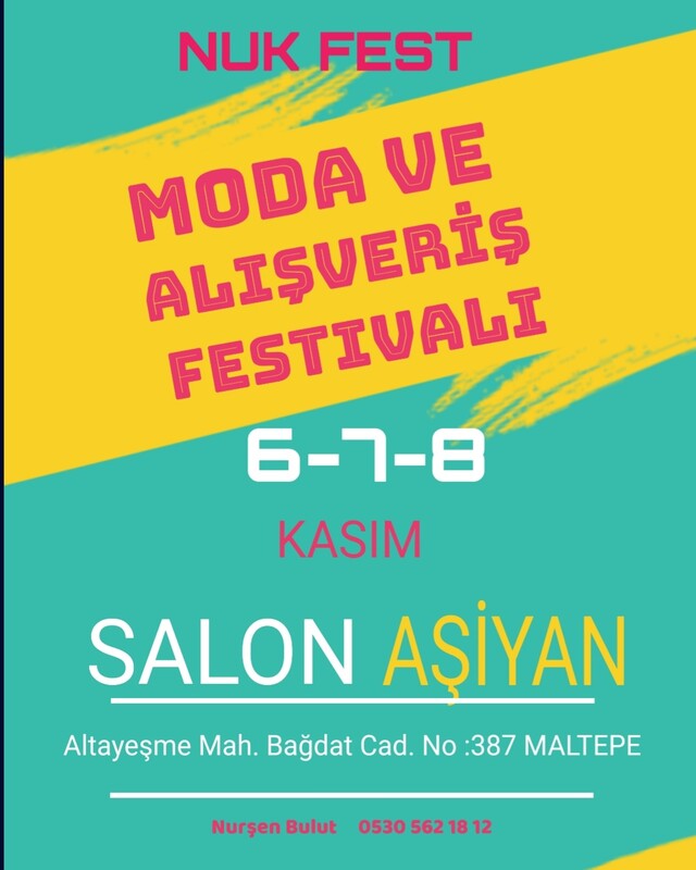 Ayra Butik’inde katılacağı NUK Fest Moda Festivalinde siz Modaseverlerle bir araya gelmenin mutluluğunu yaşamak için sizleri Maltepe Salon Aşiyan’da 6-7-8 Kasım 2019 tarihlerinde bekliyoruz.