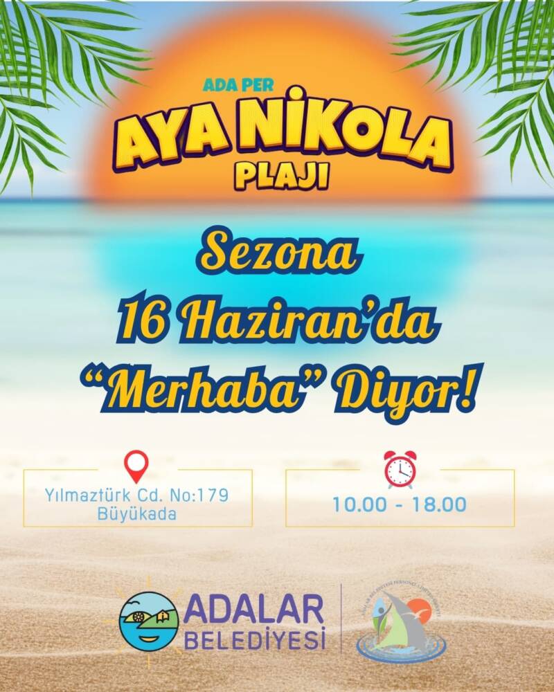 Adalar Belediyesi iştiraki ADA PER işletmesinde hizmet veren Aya Nikola Plajımız,  bugün (16 Haziran Pazartesi) itibarıyla yaza kapılarını açıyor!