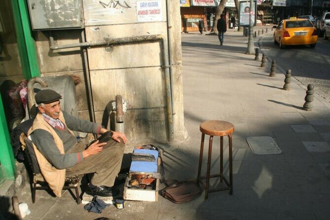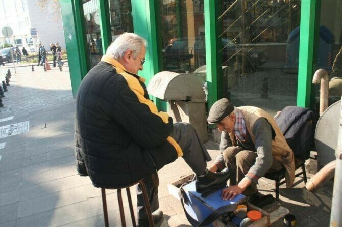 Artık yaşlandım ve tükendim. Bu da yetmezmiş gibi dört yıl önce yanında kaldığım oğlum Alişan ‘ın evine gidiyordum hava karmak üzereydi. Minibüs’den inmiş ve kaldırımda yürüdüğüm bir sırada özel bir otomobil bana çarpmış. Çarpma anını hatırlamıyorum. Günlerce yoğun bakımda yattım. Kazadan üç ay sonra hastaneden taburcu oldum.Kalçama ve sağ koluma PLATİN takıldı.Yani şu anda sakatım ve sosyal Güvencim’de yok.yani işimiz Allah’a kalmış. Evladıma fazla yük olmamak bu gördüğünüz köşede tam 25 yıldır ayakkabı boyacılığı yapıyorum.Akşam eve gittiğimde torunlarım “DEDE bize çikolata getirdin mi”? diye soruyorlar.Bende o günkü kazancıma göre çok sevdiğim torunları ufak tefek hediyeler alıyorum.Fakirliğin gözü kör olsun elde yok avuçta ta yok. Fakirlikte Allah’tan zenginlikte. Sakat bir insanım buna da şükürler olsun. Beterin beteri var” şeklinde konuşarak halinden şikâyetçi olmamaya özen gösteriyor. Allah yardımcısı olsun.