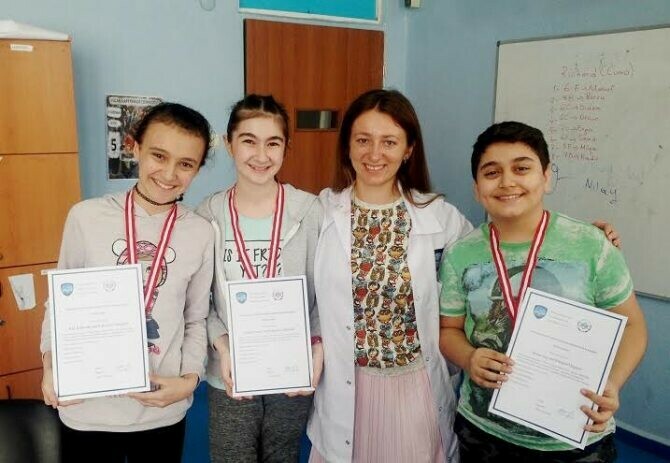 Ahmet Şimşek Koleji 7-A sınıfı öğrencileri Elif Alsancak, Eylül Şaşmaz ve Umut Ata Elmas, “Uluslararası Çevrimiçi Projesi” kapsamında, farklı kültürlerden katılımcıların ilgilerini arttırmak, dil becerilerini geliştirmek ve gelecekte o ülkeler arasında daha iyi arkadaşlık köprüleri inşa etmek amacıyla 7. Sınıflar arasında düzenlenen projede ilk üçe girdiler.
