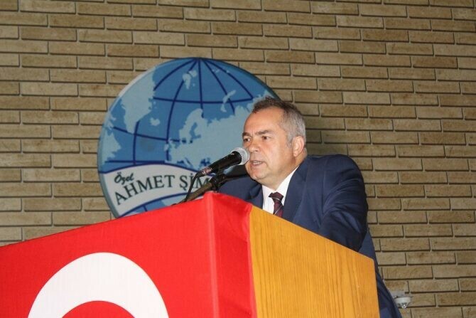 Ahmet Şimşek Anadolu Lisesi Müdürü Bora Esin ise törenin sonunda yaptığı konuşmada şunları söyledi; “Sevgili gençler, Eğitim öğretim yılının açıldığı ilk hafta 15 Temmuz şehitlerini anmak için ayrılmıştır. Aslında bu programda izlediğiniz gibi Atatürk’ün büyüklüğü bir kez daha ortaya çıkmaktadır. Çünkü O’nun kurduğu eğitim sistemi kişileri düşünmeye, araştırmaya sevk eden, yorum yapmadan birilerinin peşinden gidilmemesi gerektiğini gösteren bir eğitim sistemidir ama bundan bir yıl önce hepimizin gördüğü gibi doğru eğitilmemiş bazı yanlış insanlar birilerinin peşinden gidip ülkemizde bir şeylere kalkıştılar. İnşallah bu tür şeyler bir daha olmaz. Burada asıl görev siz sevgili gençlere düşmektedir. Sizler çevrenizi her zaman etkilemelisiniz. Zaten aldığınız eğitimin amacı da budur. Birilerinin peşinden körü körüne gitmeyiniz. Her kim düşüncesiyle, felsefesiyle sizi baskı altına almaya çalışıyorsa yapacağınız tek şey oradan son sürat uzaklaşmaktır. Neden – Sonuç ilişkisini kurmadan, mantıksızca hiç kimsenin peşinden gitmeyin.”
