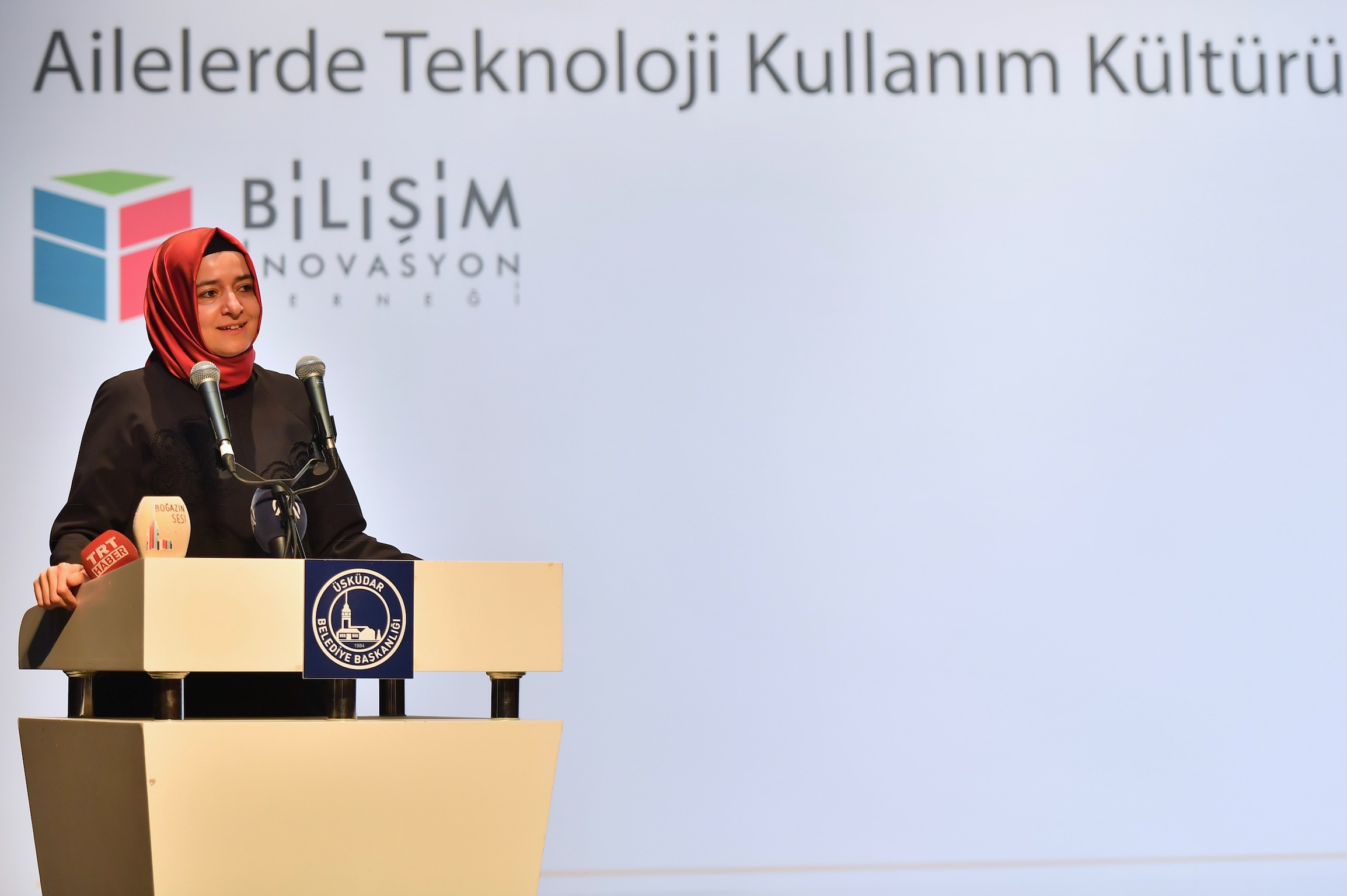 Aile ve Sosyal Politikalar Bakanı Dr. Fatma Betül Sayan Kaya, konuyla ilgili önemli çalışmalarından dolayı Üsküdar Belediye Başkanı Hilmi Türkmen’i ve Bilişim ve İnovasyon Derneği’ni tebrik ederek, “Siz değerli anne-babalar çocuklarınızın teknolojinin sunduğu imkânları çocuklarınızdan yararlandırmaya çalışırken bir yandan da onları korumaya çalışıyorsunuz. Ekonomik kalkınma için hükümet olarak gençlerimize güvenimiz sonsuzdur ve onların tüketen değil üreten bireyler olmasını isteyerek onlara tüm imkânlarımızı sunmak için çalışıyoruz. Biz aileyi merkeze almayan hiçbir sosyal politikanın başarıya ulaşamayacağına inanıyoruz. Ailenin de merkezinde anne bulunduğuna inanarak, sloganımızı ‘Güçlü Anne, Güçlü Aile, Güçlü Toplum’ yaptık,” dedi.