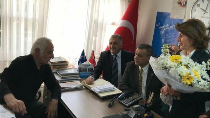 Yeni seçilen Çarşı Mahalle muhtarı Senem Özdemir 52 yıldır görev yapan Sabahattin Çetin Turan’a vermiş olduğu emeklerinden dolayı Plaket taktim ederek teşekkür etti..