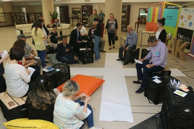 Tasarım Araştırma Katılım Atölyesi TAK Kartal’ın, geçtiğimiz günlerde Atalar Mahallesi’nde gerçekleştirdiği ‘Yaşayan Sokak’ etkinliğinde mahallelilerle birlikte alınan sonuçlar, Kartal Belediye Başkanı Op. Dr. Altınok Öz’ün katılımıyla değerlendirildi. Kartal Belediyesi Hizmet Binasında yapılan çalışmada Başkan Altınok Öz, TAK Kartal ekibi ve birim müdürleriyle, Atalar Mahallesi’nde ‘Toplama (+) ve Çıkarma (-)’ yöntemi ile başlatılan çalışmanın sonuçlarına ilişkin fikir alış verişinde bulundu.