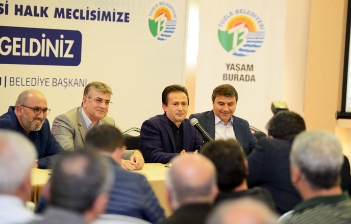 Tuzla Belediye Başkanı Dr. Şadi Yazıcı, Postane ve Cami Mahalleleri Halk Meclisi toplantısını Tuzla Belediyesi Rumeli Kültür Merkezi’nde düzenledi. Başkan Yazıcı, Başkan Yardımcıları ve birim müdürleri ile birlikte 2 mahalle muhtarı, mahallede aktif çalışmalar yürüten sivil toplum kuruluşlarının yöneticileri ve sakinlerini misafir etti.