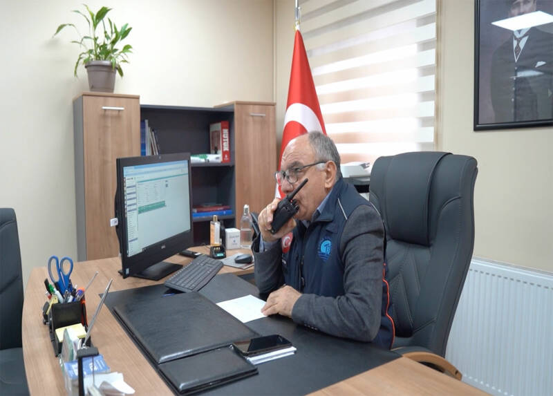 İlçemizde afete özel bir röle kurduk. Telsiz sistemlerimizi oluşturduk. Toplamda 82 tane telsizin çalışma gruplarına, mahalle muhtarlıklarına dağıtımını yaptık. Amacımız olası bir afet ve acil durumda kesintisiz haberleşmeyi sağlamak.