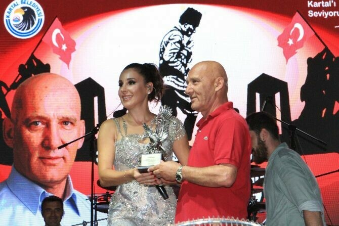 Konuşmasının ardından Kartal Belediye Başkanı Op. Dr. Altınok Öz, sanatçı Funda Arar’a plaket takdiminde bulundu. Plaketi alan Funda Arar; “Kartal, çok güzelsiniz. Ben Kartal Belediye Başkanımız Op. Dr. Altınok Öz’e bu özel günde bizleri bir araya getirdiği için çok teşekkür ediyorum. Hepimizin bayramı kutlu olsun” dedi.
