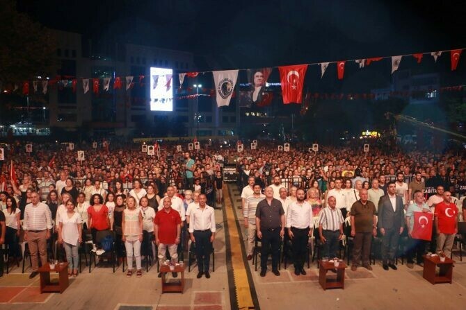 Konserde sahneye davet edilen Kartal Belediye Başkanı Op. Dr. Altınok Öz ise şöyle konuştu: “ Ağzınıza sağlık, bu gecede bizi onurlandırdığınız için. Emekçi kardeşlerimizin de emeklerine sağlık. Sevgili Kartallılar, 30 Ağustos Zafer Bayramını kutluyoruz. Bu hafta zafer haftası. 26 Ağustos 1071’de girdiğimiz bu topraklarda 26 Ağustos’ta başlayan ve 30 Ağustos’ta biten bir savaşla bu topraklardan tekrar çıkmamak üzere, burada kalıcı olmak üzere büyük bir zafer kazanıldı. Her iki komutanın da yani hem Alparslan’ın hem de Gazi Mustafa Kemal’in benzer bir özelliği var. 1071’de Anadolu’ya giren Alparslan, büyük bir ordu sahibi olan Romen Diojen’i yendi. Gazi Mustafa Kemal Atatürk de karşısındaki büyük orduyu yendi. İkisinin de bir ortak özelliği daha var. Alparslan Diojen’i yendi, Diyojen Alparslan’a esir düştü. Ama Alparslan Diojen’i katletmedi, çadırında misafir etti. Aynı başarıyı gösteren Gazi Mustafa Kemal Atatürk de Yunan Komutanı Trikopis’i katletmedi. Çıkarttığımız sonuç şu; demek ki Gazi Mustafa Kemal Atatürk kendisinden önceki komutanın tarih bilgisini çok iyi öğrenmiş. Tarihi bilmeyen sınıfta kalır. Onun için diyorum ki, mutlaka hem kendi tarihinizi hem de ulusal kurtuluş tarihinizi çok iyi öğrenin.. Sizden rica ediyorum. Nutuk’u okumayan Kartallı kalmasın. Bayramınızı kutluyorum. Hepinizi çok seviyorum. İyi ki Kartal’ın Belediye Başkanıyım. Bana bu gururu yaşattığınız için sizlere teşekkür ediyorum.”