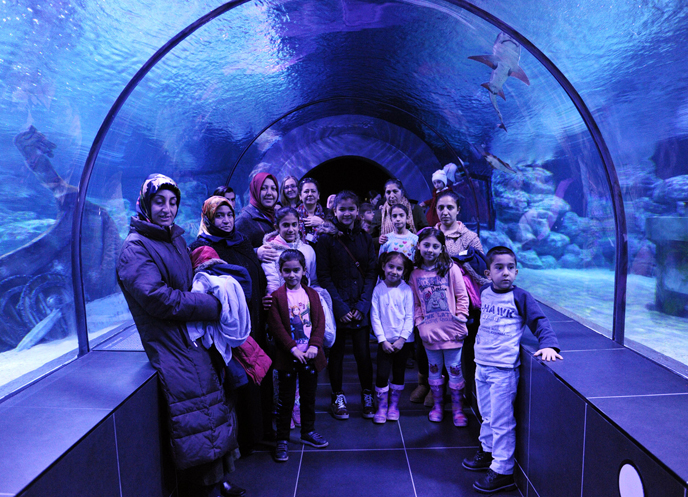Tuzla Belediyesi Gönül Elleri Çarşısı Yetimler Komisyonu’na kayıtlı olup aralık ayında doğan ‘Bizim Çocuklarımız’, aileleri ve Kadın Kent Gönüllüleri ile birlikte doğum gününü kutladı. ‘Bizim Çocuklarımız’, su altı canlılarının yaşamını eğlenerek öğrendi, aileleri ve Kadın Kent Gönüllüleri ile birlikte merak ettikleri sorulara yanıt aradı. ‘Bizim Çocuklarımız’, bir cam mesafesi uzaklıktaki canlıları dikkatli gözlerle inceledi. Program devamında Tuzla Belediyesi Aydıntepe Sosyal Tesisleri’nde yemek yiyen ‘Bizim Çocuklarımız’, aileleri ve Kadın Kent Gönüllüleri ile birlikte doğum günü pastasını kesti.
