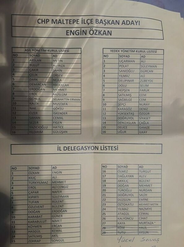 CHP Maltepe İlçe Başkanlığı 12. Olağan Kongresi’nde  diğer 2 aday listelerini açıklarken,  Haşim Taş adaylıktan çekildi. Akşam 21,30’da kongre sona erdi ve oyların sayımına geçildi. Başabaş giden ve 100 dakika süren sayımda 6 oy farkla 207 oy alan Engin Özkan seçimi kazandı.