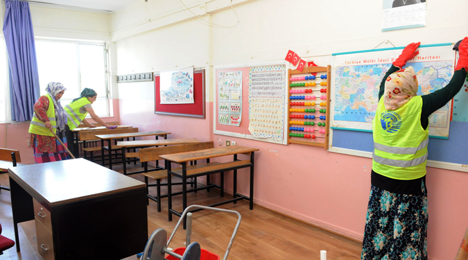 Tuzla Belediye Başkanı Dr. Şadi Yazıcı’nın “Eğitim Kenti Tuzla” vizyonunda sürdürdüğü hizmetler, kesintisiz devam ediyor. Tuzla Belediyesi’nin eğitim hizmetleri kapsamında yer alan okul temizlikleri de, 2016-17 eğitim öğretim yılı öncesinde Cemil Türker İlköğretim Okulu’nda başladı. Tuzla Belediyesi’nin oluşturduğu ekip, okulların iç mekanlarında temizlik yapıyor. Ekip, her okulun koridor, sınıf, oda ve ortak kullanım alanlarını temizliyor, siliyor ve dezenfekte ediyor. Tuzla Belediyesi, 2016-17 eğitim öğretim yılının başlayacağı 19 Eylül 2016’ya kadar 22 ilkokul, 20 ortaokul ve 18 lise olmak üzere toplam 60 okulda temizlik yapacak. Okullar, yarıyıl tatilinde bir kez daha detaylı bir şekilde temizlenecek.
