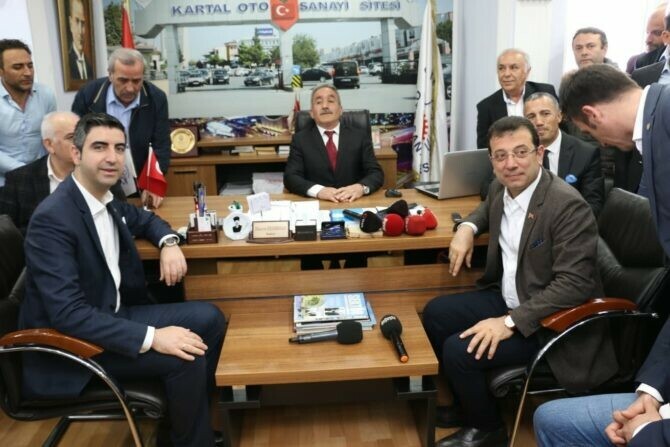 Ardından Kartal Oto Sanayi’ne geçen İmamoğlu ve Yüksel, Kartal Oto Sanayi Sitesi yönetimini ziyaret etti. Ziyareti sırasında konuşan İmamoğlu, ”İnsanlar hizmette yarışsın. Hayırlısı ile 31 Mart tan sonra ben yarışan bir sürecin memlekete ve insanlara çok daha fayda vereceğini düşünüyorum. Tek başına insan tembelleşir. İkili rekabet iyidir. Biz, rekabete talibiz. Hizmet vereceğiz. Ama tatlı rekabet. İşine bakacaksın. Rakibine taş atarak ayağına çelme takarak olmaz. Biz olaya, hizmet yarışı olarak bakıyoruz. Biz, talibiz, hazırız” ifadelerini kullandı.