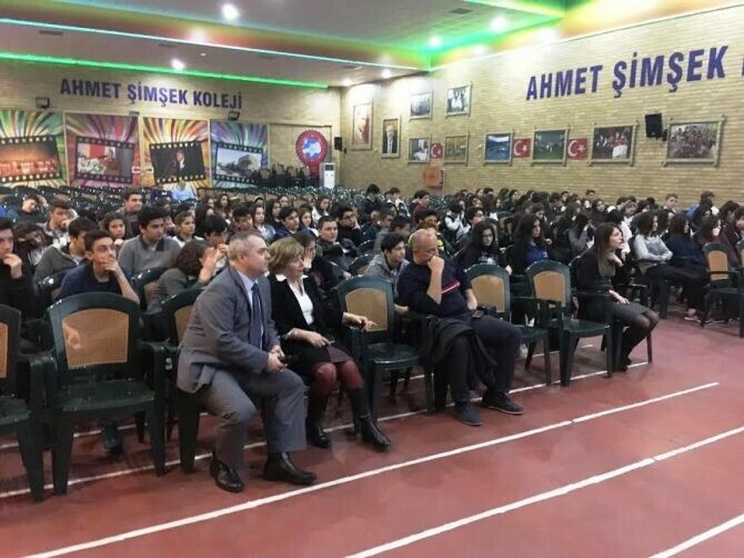 Ahmet Şimşek Koleji’nde düzenlen semineri dikkatle izleyen öğrenciler, engelli bireylerin verdiği mücadeleyi daha iyi anladılar.