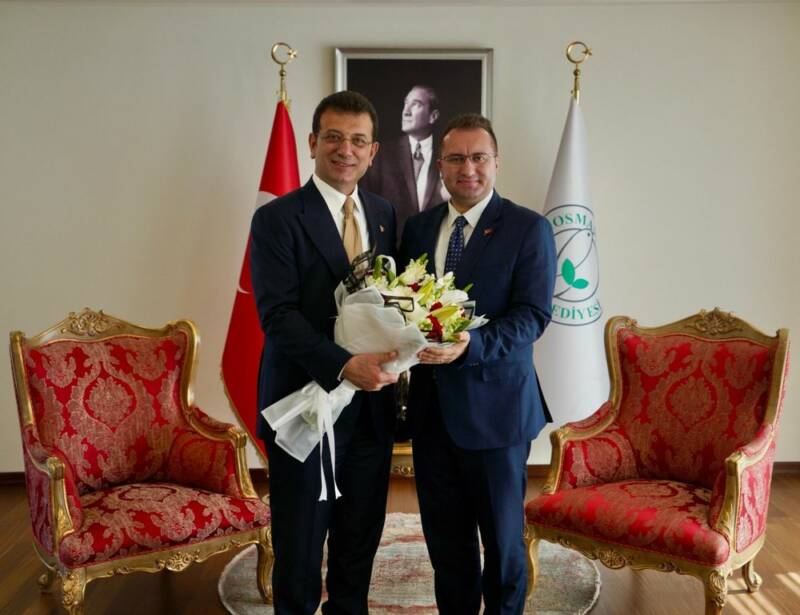 İstanbul Büyükşehir Belediye (İBB) Başkanı Ekrem İmamoğlu, 31 Mart 2024 yerel seçimlerinden başarıyla çıkan Gaziosmanpaşa Belediye Başkanı Hakan Bahçetepe’ye tebrik ziyaretinde bulundu. Bahçetepe tarafından makam odasında ağırlanan İmamoğlu, “Başkanımız inşallah çok başarılı olacak. Hem Hakan Başkanımıza hem ekibine, İlçe Başkanımıza ve burada emeği geçen bütün vatandaşlarımıza seçimde yaşanan bu başarı için teşekkür ederiz. Ama tabii esas başarı, şimdi oluşacak. O da hizmetle insanlarımızın mutlu olmasını sağlamak” dedi.