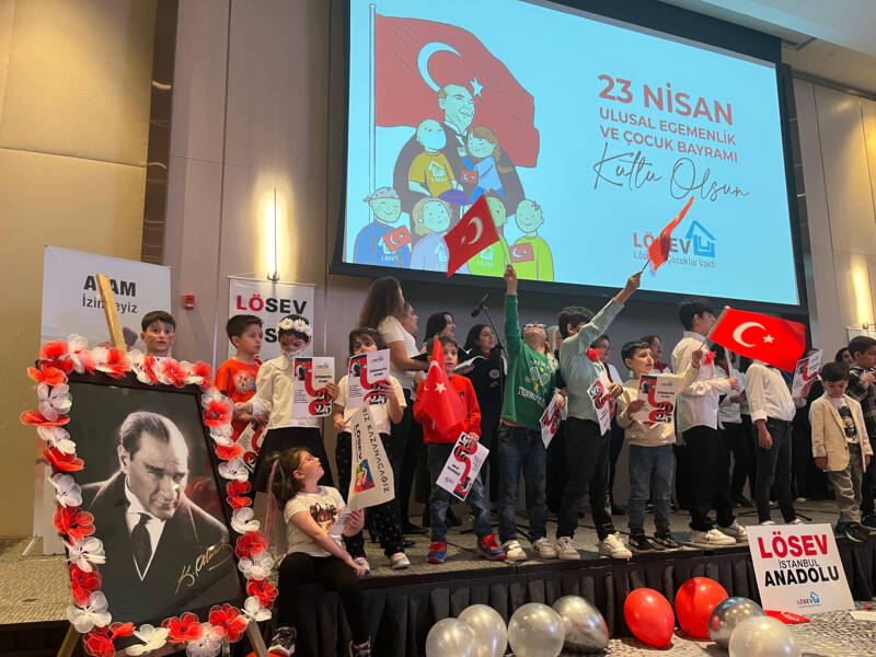 LÖSEV’e kayıtlı lösemi ve kanser ile mücadele eden minikler Türkiye genelinde düzenlenen ‘Ulusal Egemenlik ve Çocuk Bayramı coşkusunu birlikte yaşadı. Mustafa Kemal Atatürk tarafından kendilerine armağan edilen bayramı yaşamanın sevinciyle minikler; oyunlar ve danslar ile doyasıya eğlendi.