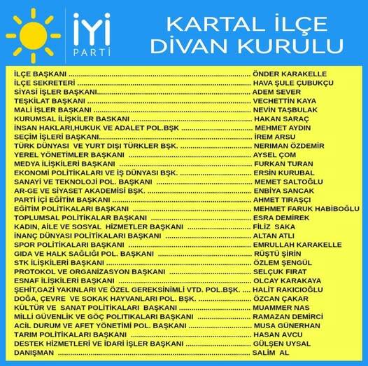 İstanbul 34 Gazetesi » Belediye, Genel, İlçeler, Kartal, Manşet, Toplum » İYİ Parti Kartal İlçe Divan Kurulu Açıklandı