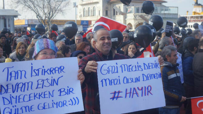 Anayasa değişiklik teklifine karşı tepkiler yükseliyor. Kadıköy İskele Meydanı’nda, ‘Hayır’lı Kadıköy Platformu’ çağrısıyla bir araya gelen Meclisten geçen Anayasa değişikliğine karşı “Hayır” dedi.