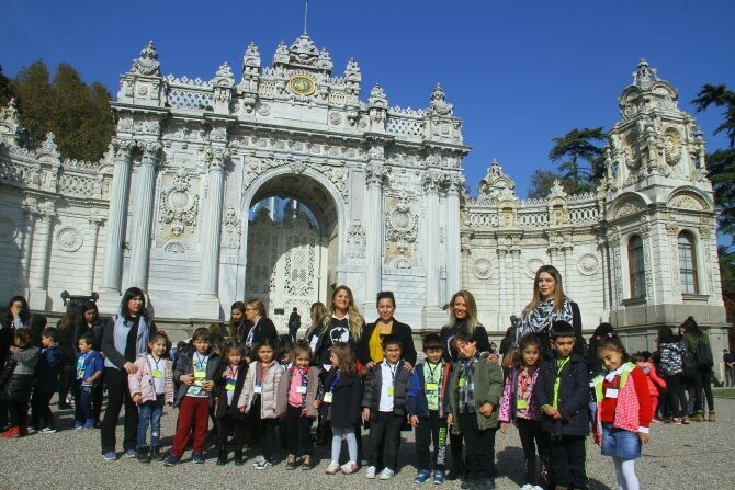 6 padişah ve Atatürk’e ev sahipliği yapan tarihi Dolmabahçe Sarayı’na düzenlenen geziye Kartal Belediyesi’ne bağlı Atalar Merkez, Atalar Şube, Kordonboyu, Begüm Yavuz, Uğur Mumcu, Cumhuriyet 1 ve 2, Hürriyet, Gümüşpınar, Soğanlık Orta Mahalle ve Soğanlık Yeni Mahalle Çocuk Gelişim Merkezleri’nde eğitim gören öğrenciler katıldı. Kartal’dan otobüslerle tarihi Dolmabahçe Sarayı’na giden minik öğrencilere Kartal Belediyesi Kreş Müdürü Nazlı Enif Dipşar, kreş sorumluları ve öğretmenleri refakat etti. Rehberlerin anlatımı ile tarihi sarayı inceleyen minikler, öğretmenlerini de soru yağmuruna tuttu. Atatürk’ün İstanbul ziyaretlerinde 11 yıl boyunca Cumhurbaşkanlığı makamı olarak kullandığı Dolmabahçe Sarayı’nda öğrenciler, Atatürk’ün ebediyete intikal ettiği odayı da gezdi. Atatürk’ün 10 Kasım 1938’de saat 09.05’te hayata gözlerini yumduğu anda durdurulan saatle ilgili soru soran minikler, sarayın devasa tören salonundan etkilendi. Yaklaşık 1 saat boyunca 3 grup halinde sarayı gezen minikler, güzel havanın da tadını çıkardı.