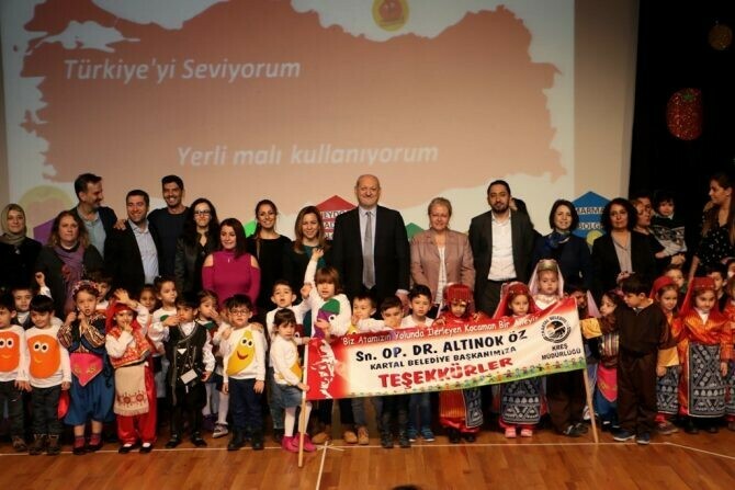 Kutlama programında konuşan Kartal Belediyesi Başkan Yardımcısı Mustafa Fehmi Okay, “ Belediye Başkanımız Op. Dr. Altınok Öz’ün, 2009 yılındaki seçim vaatlerinden biri de her mahalleye bir kreşti. 2009’da ilçemizde 1 kreş vardı, şimdi 11 tane var. Muhtemelen önümüzdeki sene bu sayı 13 ya da 14 olacak, seçim dönemine kadar 17 veya 18 olacak. Bu sayılara ulaşmayı hedefliyoruz. Kreşlerimizin ne kadar başarılı olduğunu, gelen taleplerden anlıyoruz. Bu bir sosyal proje ve sonuna kadar devam ettirmek istiyoruz” dedi. Yerli malı haftasının önemine de dikkat çeken Okay, “1923 yılında Atatürk’ün İzmir İktisat Kongresi’nde verdiği kararla, 1. Dünya Savaşından çıktıktan sonra yerli malının korunması, güçlenmesi, yabancı sermayeye karşı ayakta durabilmesi amacıyla karar alınmış. 1946 yılında da yerli malı haftası resmileşmiş. Günümüz dünyasında artık sermaye hareketlerinin ortadan kalkması ile birlikte yerli veya milli üretimde sıkıntı yaşanıyor. Bizim temel görevlerimizden biri, ekonomik gücü olan ülkeler gibi belirli konularda milli veya yerli malını inşa etmek ve koruyup kollamaktır” dedi.