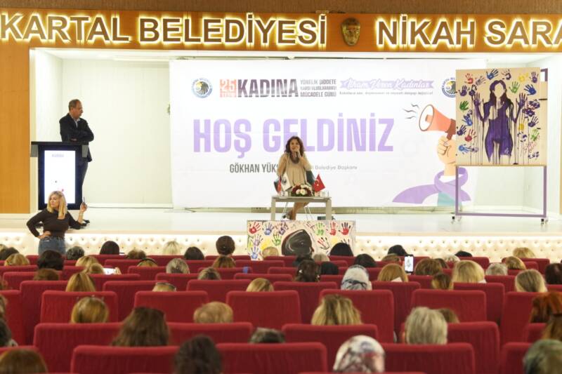 Saygı duruşu ve İstiklal Marşı ile başlayan program açılış konuşmaları ile devam etti. Kartal Belediyesi Kadın ve Aile Hizmetleri Müdürü Deniz Karacan, 25 Kasım’ın kadınların yaşadığı şiddet ve eşitsizliğe karşı ortak mücadelenin simgesi olduğunu belirterek, “Kadına yönelik şiddet yalnızca kadınları değil, tüm toplumu yaralayan bir insan hakları ihlalidir. Sessiz kalmak şiddeti büyütür. Kartal Belediyesi olarak kadınların güçlenmesini destekleyen kurslar, kadın emeği projeleri ve şiddet mağdurlarına sağladığımız psikolojik–hukuki destekle bu mücadelenin her zaman yanındayız. Şiddetsiz bir yaşam mümkündür; bunu dayanışmayla başaracağız.” dedi.