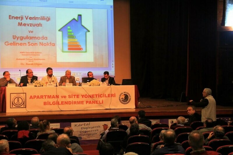 Kartal Belediyesi ile TMMOB’a bağlı Makine Mühendisleri Odası, Elektrik Mühendisleri Odası, İnşaat Mühendisleri Odası ve İzoder’in ortaklaşa düzenlediği Apartman ve Site Yöneticileri Bilgilendirme Paneli, Kartal Belediyesi Hasan Ali Yücel Kültür Merkezi’nde gerçekleştirildi. İki oturum şeklinde düzenlenen panele Kartal Belediye Başkanı Op. Dr. Altınok Öz’ün yanı sıra; Kartal Belediyesi Başkan Yardımcısı Ali Apaydın, İmar ve Şehircilik Müdürü Müjgan Özer, Çevre Koruma ve Kontrol Müdürü Dr. Dilek Kars, İmar Müdürlüğü personeli ve çok sayıda alanında uzman, mühendis, kurum temsilcisi katıldı.
