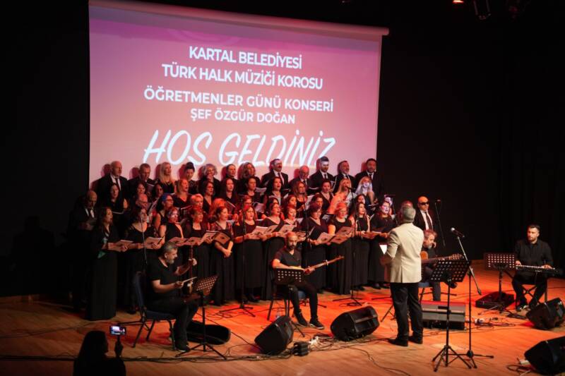 Şef Özgür Doğan yönetimindeki Kartal Belediyesi Türk Halk Müziği (THM) Korosu, halk müziğinin en sevilen eserlerini seslendirerek öğretmenlere duyulan minneti ve sevgiyi türkülerle dile getirdi.