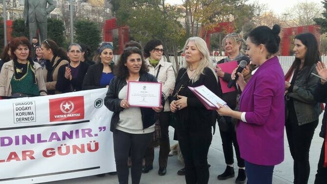 Yürüyüşte belirlenmiş olan ve mücadele eden kadınlara onur belgesi taktim edildi ,yürüyüş kadın haklarının korunması dilekleriyle son buldu.