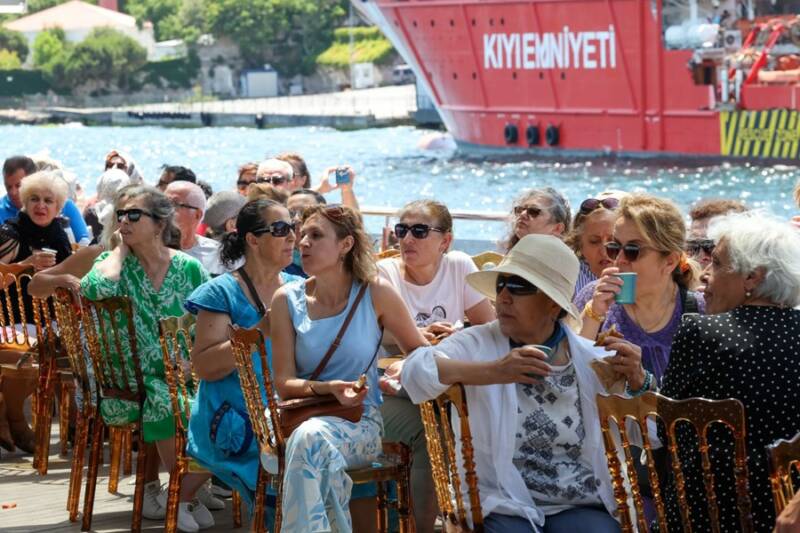 Vatandaşlara Boğaz’ın serin esintisinde rehber tarafından Boğaziçi’nin Osmanlı’dan günümüze uzanan yalıları, sarayları, yalı camileri, sarayları tanıtıldı.