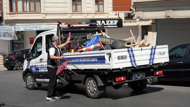 Maltepe Belediyesi’ne bağlı zabıta ekipleri, Fındıklı Mahallesi’nde kaldırım işgallerine yönelik denetim gerçekleştirdi. Mahallenin iki caddesinde duba, lastik ve sabitlenmiş duba gibi malzemeler sökülerek veya alınarak kaldırıldı.