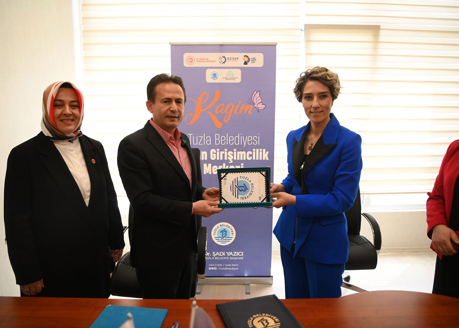 Tuzla Belediye Başkanı Dr. Şadi Yazıcı tarafından İstanbullu girişimci kadınların desteklenmesi için uygulamaya alınan Tuzla Belediyesi Kadın Girişimcilik Merkezi’ne giden girişimci kadınlar için özel anlaşmalar yapılmaya devam ediliyor. Bu kapsamda Tuzla Belediyesi ile PTT A.Ş. arasında, Tuzla Belediyesi Kadın Girişimcilik Merkezi’ne giden İstanbullu girişimci kadınlar için özel bir protokol yapıldı. Yapılan protokol çerçevesinde PTT Kargo’dan indirim, akıllı esnaf üyeliği, avantajlı PTT Cell tarifeleri gibi konularda iş birliği anlaşması yapıldı. Tuzla Belediyesi Teknoloji Geliştirme Merkezi’nde gerçekleştirilen imza törenine Tuzla Belediye Başkanı Dr. Şadi Yazıcı, İstanbul PTT A.Ş. Başmüdürü Selahattin Ekinci ve PTT A.Ş. Pazarlama ve Satış Daire Başkanı Burcu Öncin katıldı.