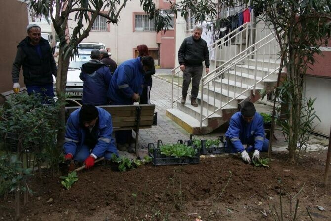 Site bahçelerindeki kışlık çalışmalarını tamamlayan ekipler, yaz mevsimi için de benzer çalışmalarına nisan ayında başlayacak.
