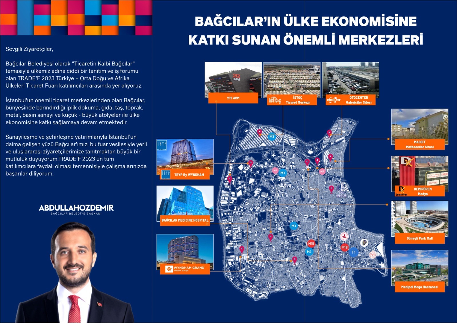 İstanbul Fuar Merkezi’nde 31 Ağustos – 3 Eylül 2023 tarihleri arasında gerçekleştirilecek olan Türkiye-Orta Doğu ve Afrika Ülkeleri Karma Ticaret Fuarı (TRADEF2023)’te Bağcılar Belediyesi de yerini aldı. Böyle bir organizasyona katılmaktan dolayı mutlu olduklarını söyleyen Bağcılar Belediye Başkanı Abdullah Özdemir, “Bağcılarlı iş adamları ile uluslararası iş adamlarını bir araya getirerek Bağcılar’daki iş hacmini daha da geliştirmek istiyoruz” dedi.