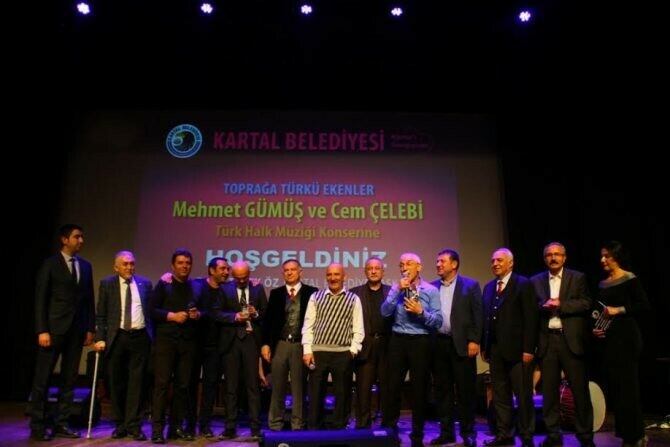 Bağlama virtüözü Cem Çelebi ile besteci ve söz yazarı Mehmet Gümüş’ün sahne aldığı “Toprağa Türkü Ekenler” konserinde, halk müziğinin birbirinden güzel türküleri yankılandı. Kartal Belediye Başkanı Op. Dr. Altınok Öz’ün de dinleyicileri arasında yer aldığı konserde, Cem Çelebi ve Mehmet Gümüş’ü sanatçı dostları da yalnız bırakmadı. Konserin sonunda sahneye çıkan Kartal Belediye Başkanı Op. Dr. Altınok Öz, her iki sanatçıya da kültür ve sanata yaptıkları katkılardan dolayı Kartal heykelciği takdim etti. Kısa bir konuşma yapan Başkan Altınok Öz, türkülere hayat veren her iki sanatçıya da teşekkür etti. Yaklaşık 2 saat süren konser, Kartallı vatandaşlardan tam not aldı.