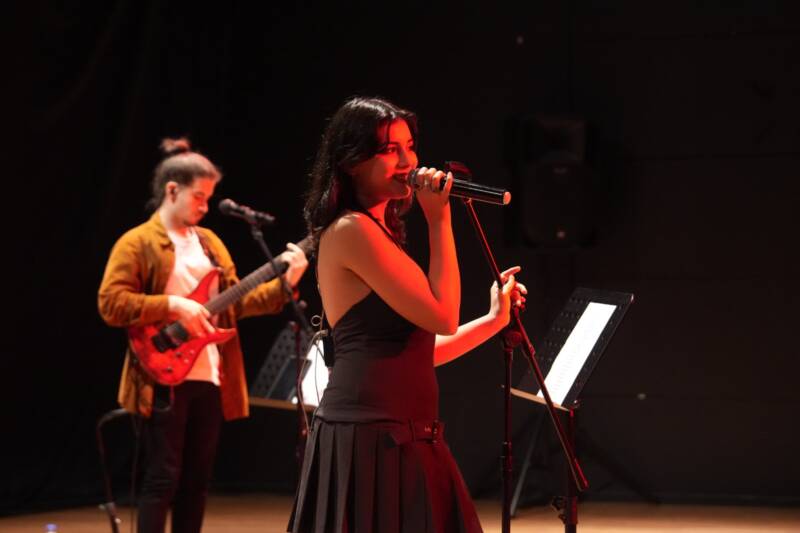 Solist İris Doğru’nun güçlü vokaline; elektro gitarda Ekin Can Kollu, saksafonda Mertcan Örnek, bateride Emre Yenilmez, klavyede Burak Berat ve bas gitarda Mert Şen eşlik etti. Grup, geniş repertuvarıyla farklı tarzlardan örnekler sunarak dinleyicilere akıcı bir müzik deneyimi sundu. Konser, sıcak ve samimi bir atmosferde gerçekleşirken dinleyiciler de zaman zaman şarkılara eşlik etti.